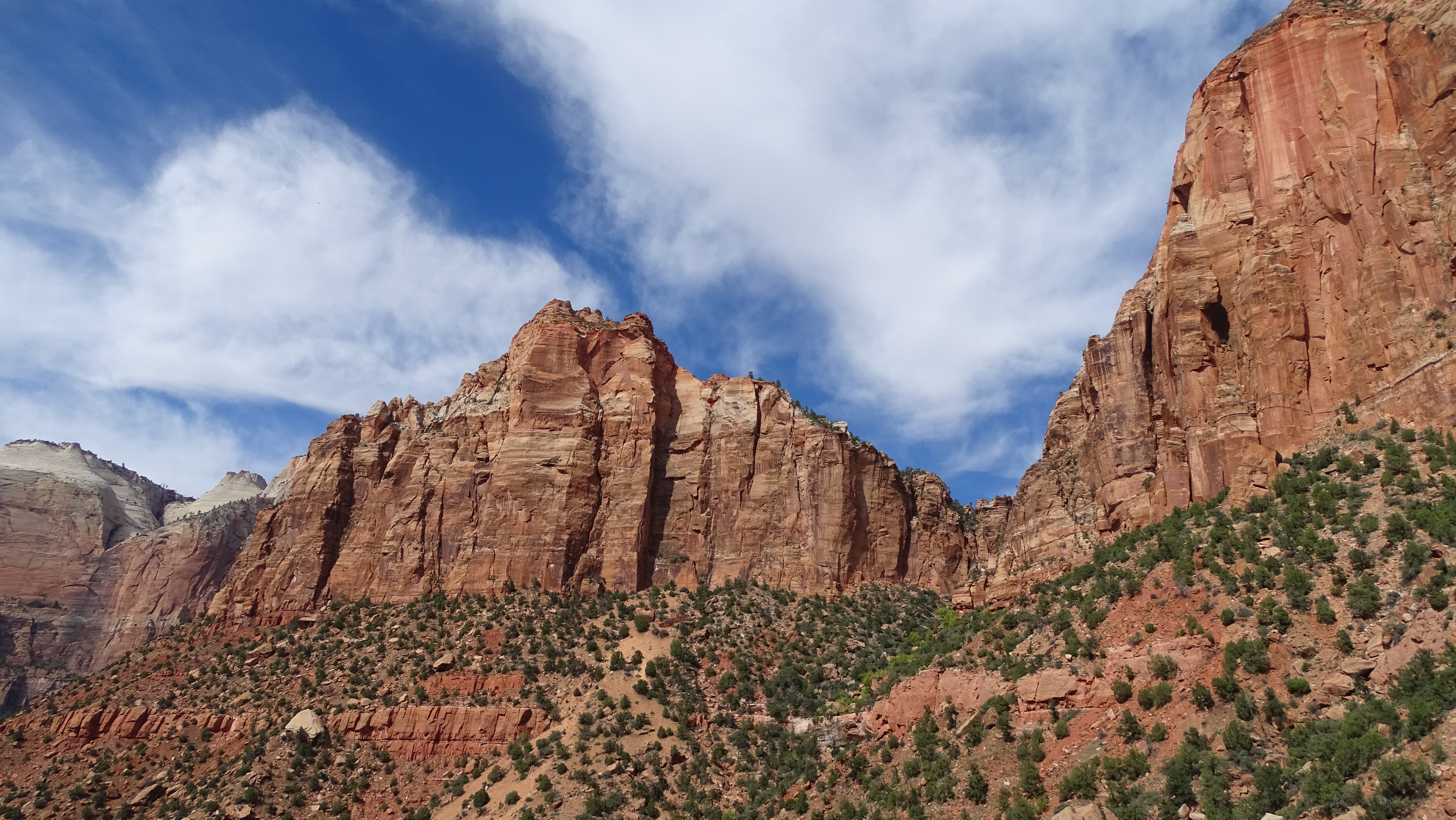 Nach einer langen Fahrt, die meistens auf schnurgeraden Straßen stattfand, erreichten wir den Zion Nationalpark.